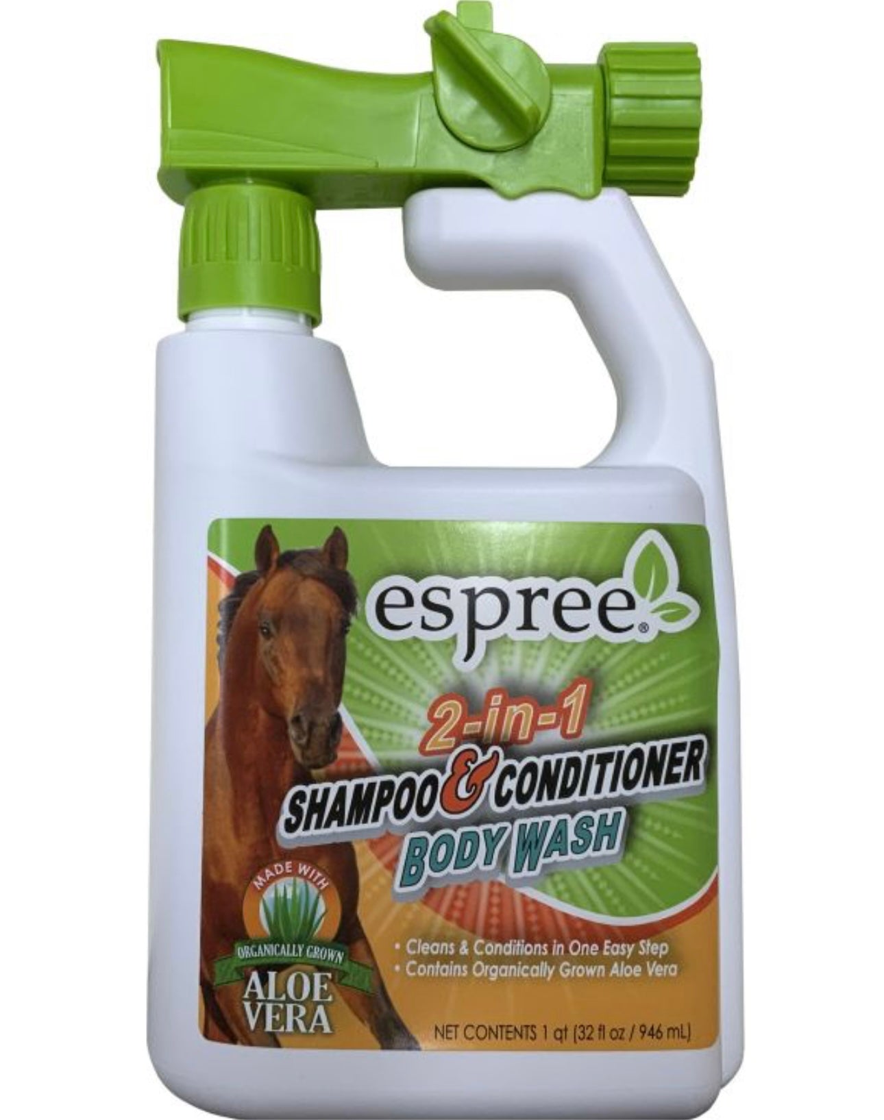 This 2-in-1 Horse Shampoo and Conditioner is specially formulated with organically grown aloe vera to provide your equine friend with a luxurious and nourishing bathing experience. Designed to cleanse and moisturize your horse's coat, leaving it soft, shiny, and healthy. With its gentle yet effective formula, it removes dirt, grime, and sweat from your horse's skin while also detangling and conditioning its mane and tail.