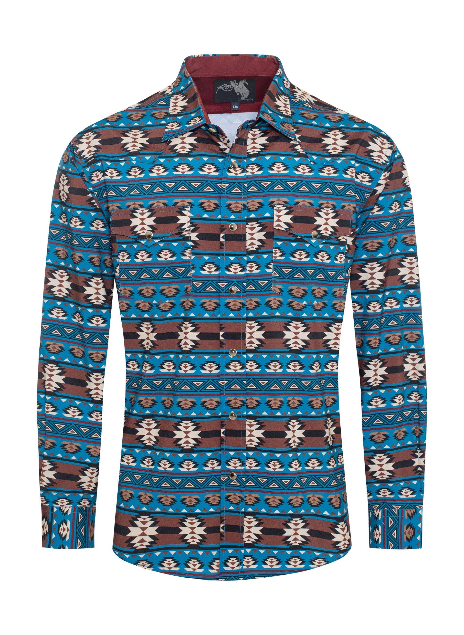 Description: Men's western long-sleeve, 100% modal Aztec printed shirts with snap buttons.