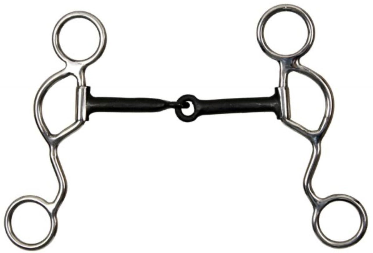 Half moon cheek snaffle bit. Features 4 3/4" blued steel mouth and 6 1/4" cheeks.