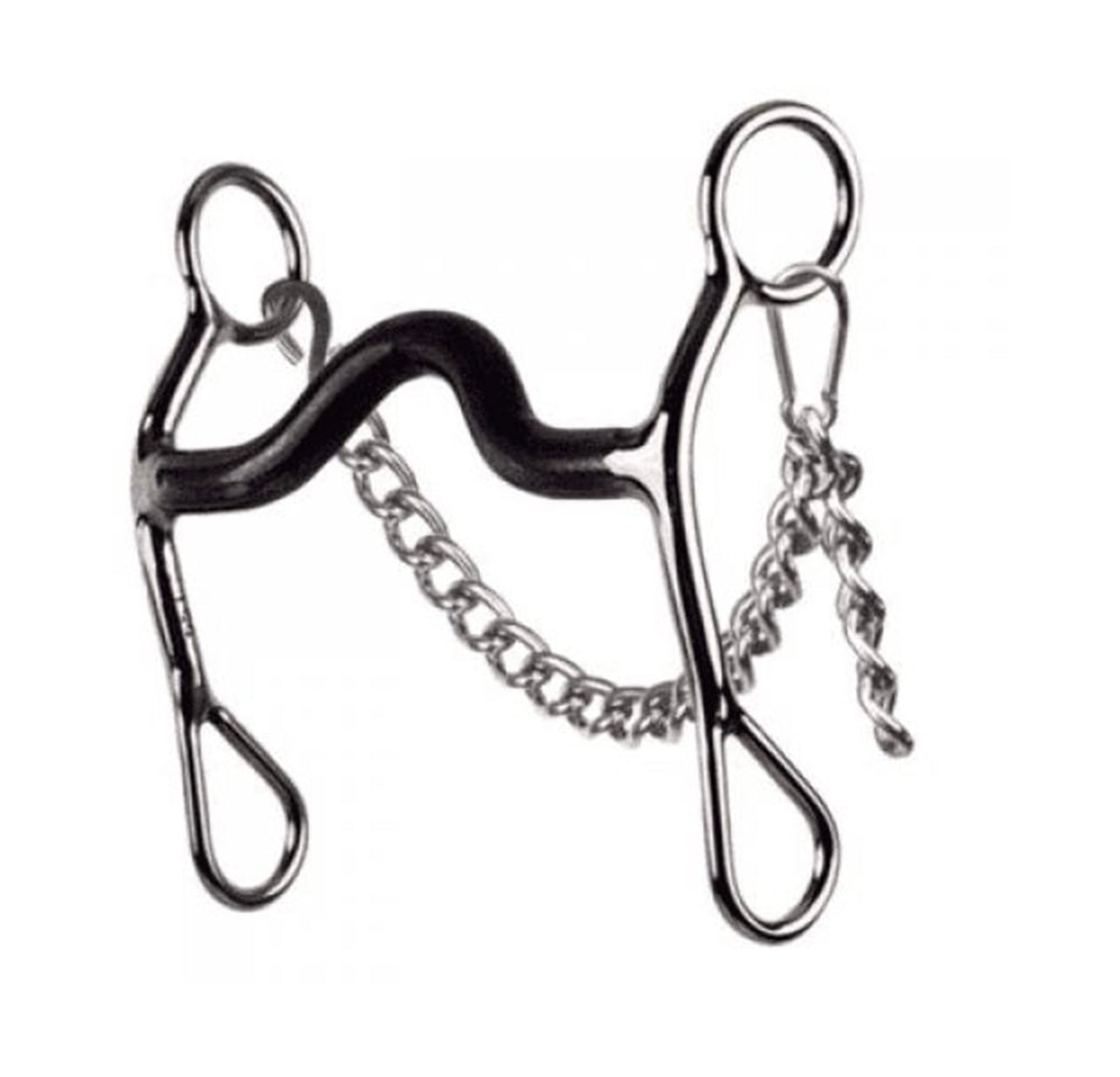 Reinsman Medium Port Sweet Iron Bit. Very good low leverage bit for horses with a good mouth. Solid cheeks for stability and a medium-severe mouth with a good deal of tongue relief. You will really enjoy watching a well trained, good mouthed horse perform in this moderately light bit. Sweet iron is intended to rust and promotes salivation which makes a more supple feeling mouth.