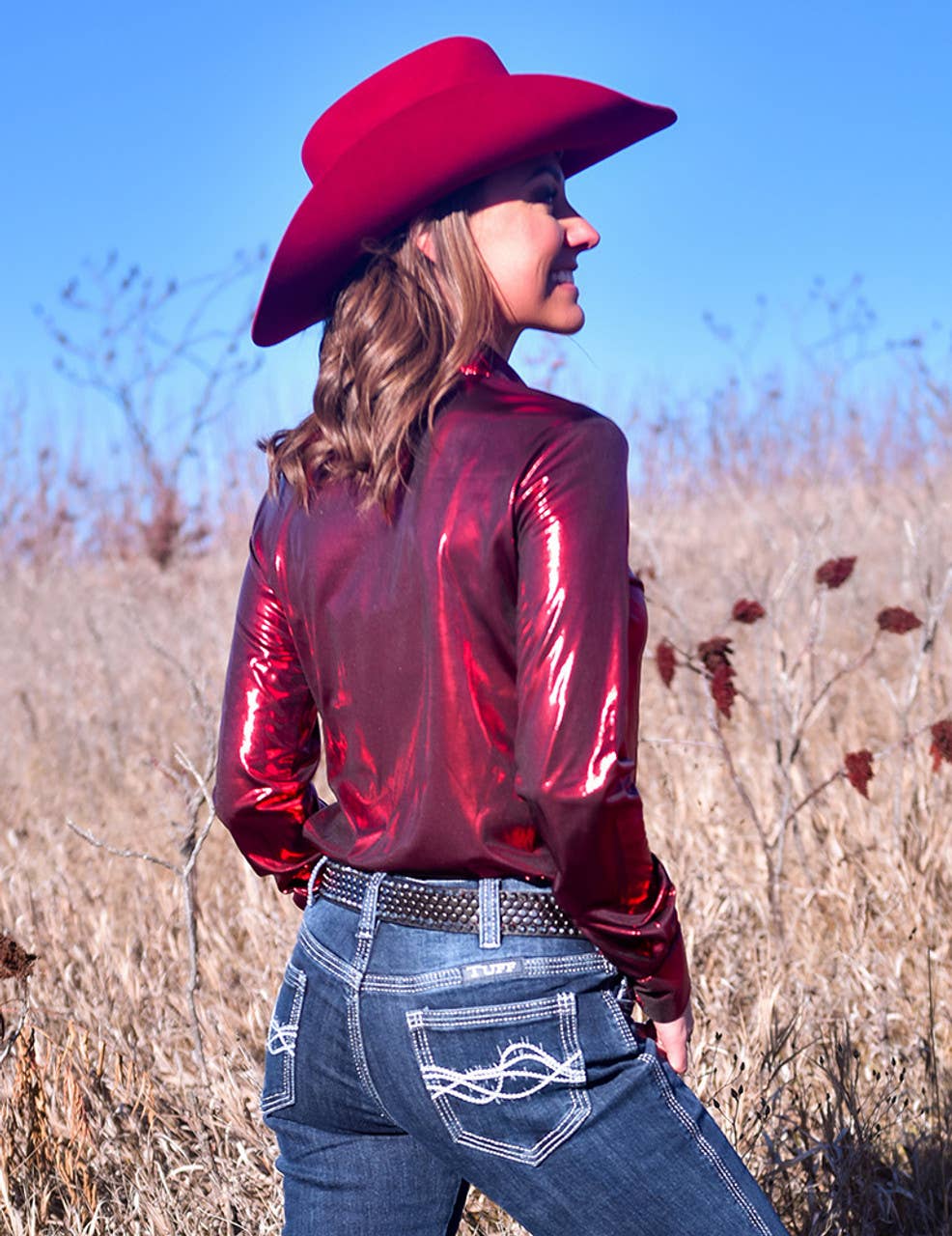 Cowgirl Tuff | Pullover Shirt | Red Shiny Metallic Lightweight Jersey