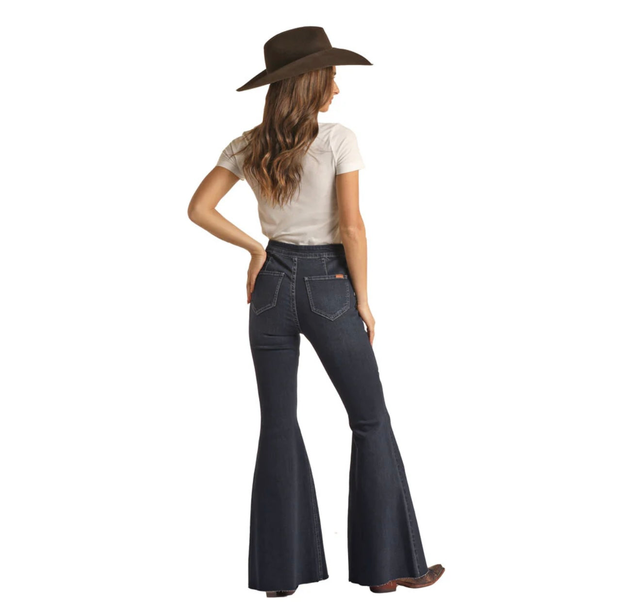Rock & Roll Cowgirl Front Seam Button Bell Stretch Jean - Dark Wash