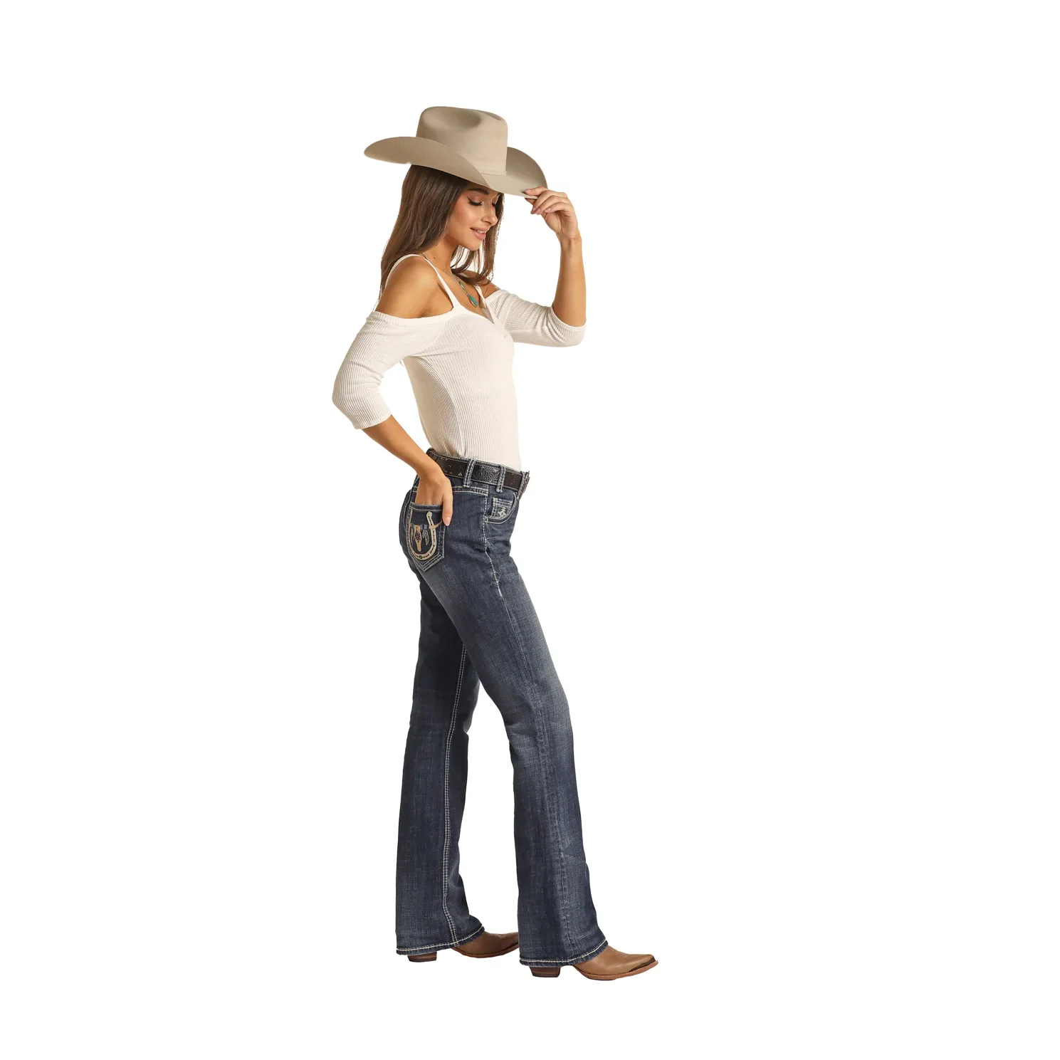 - Longhorn embroidery on back pockets