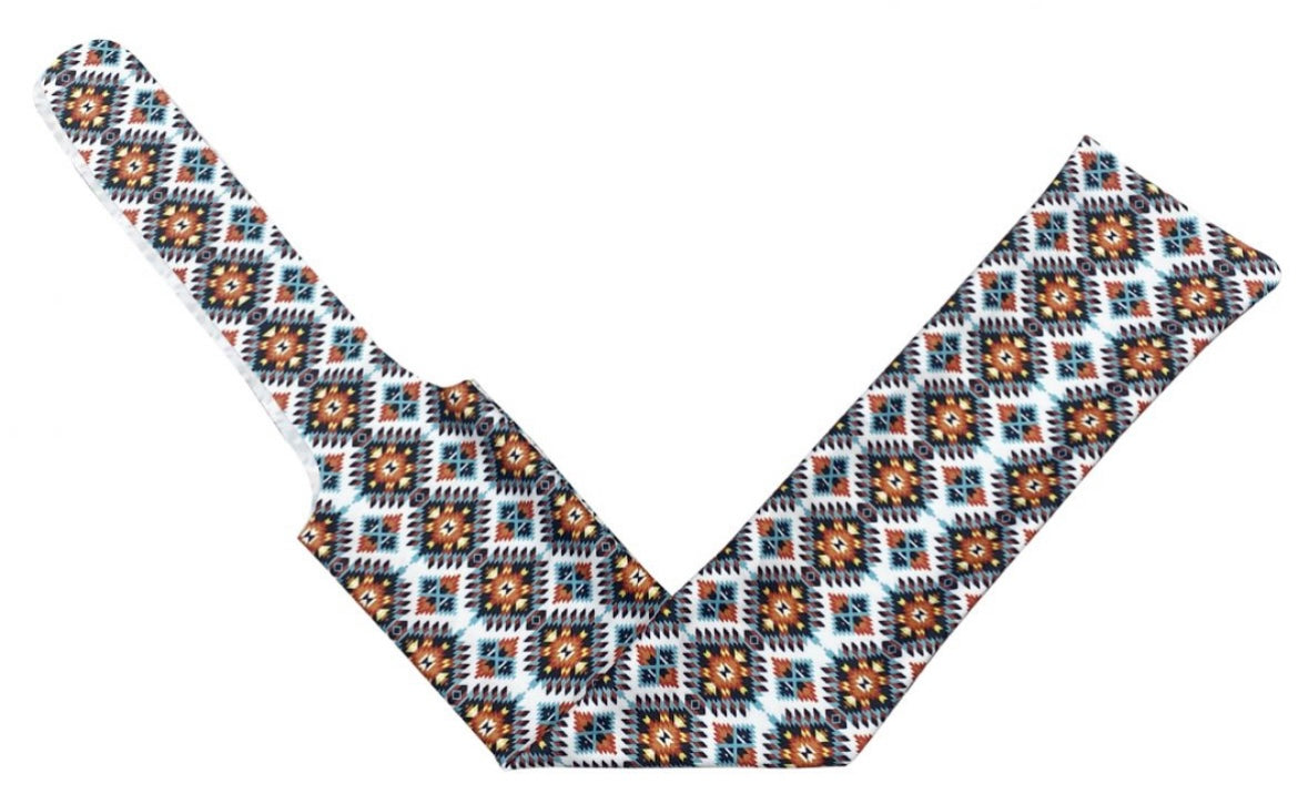 Aztec Lycra printed slip on tail bag. This tail bag is made of stretchy Lycra® material and is designed to protect hair from dirt and breakage. Measures 22" with 11" ties.