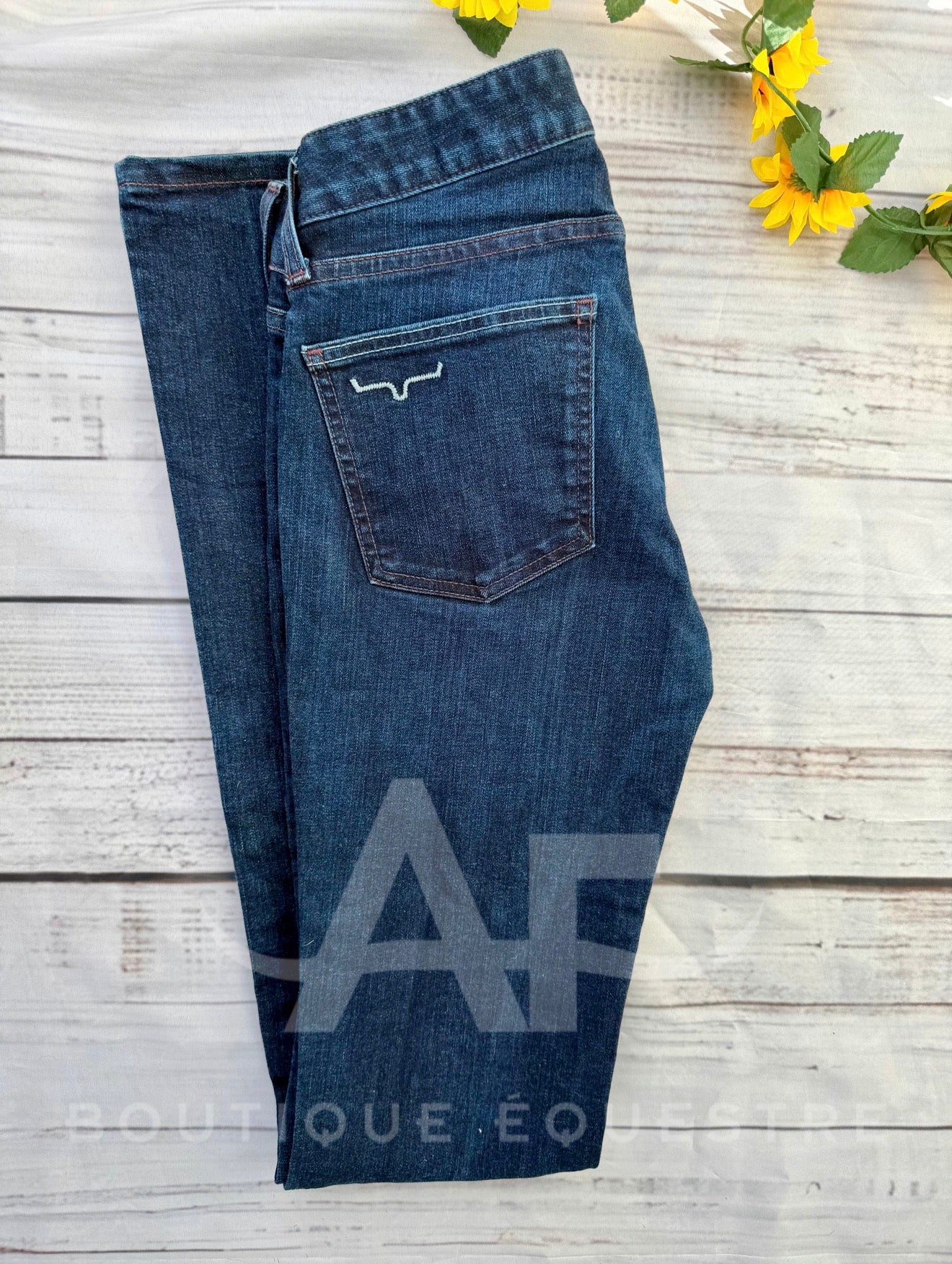 - The dark wash tri-blend denim is accented with light hand-sanded details and a single rear pocket logo