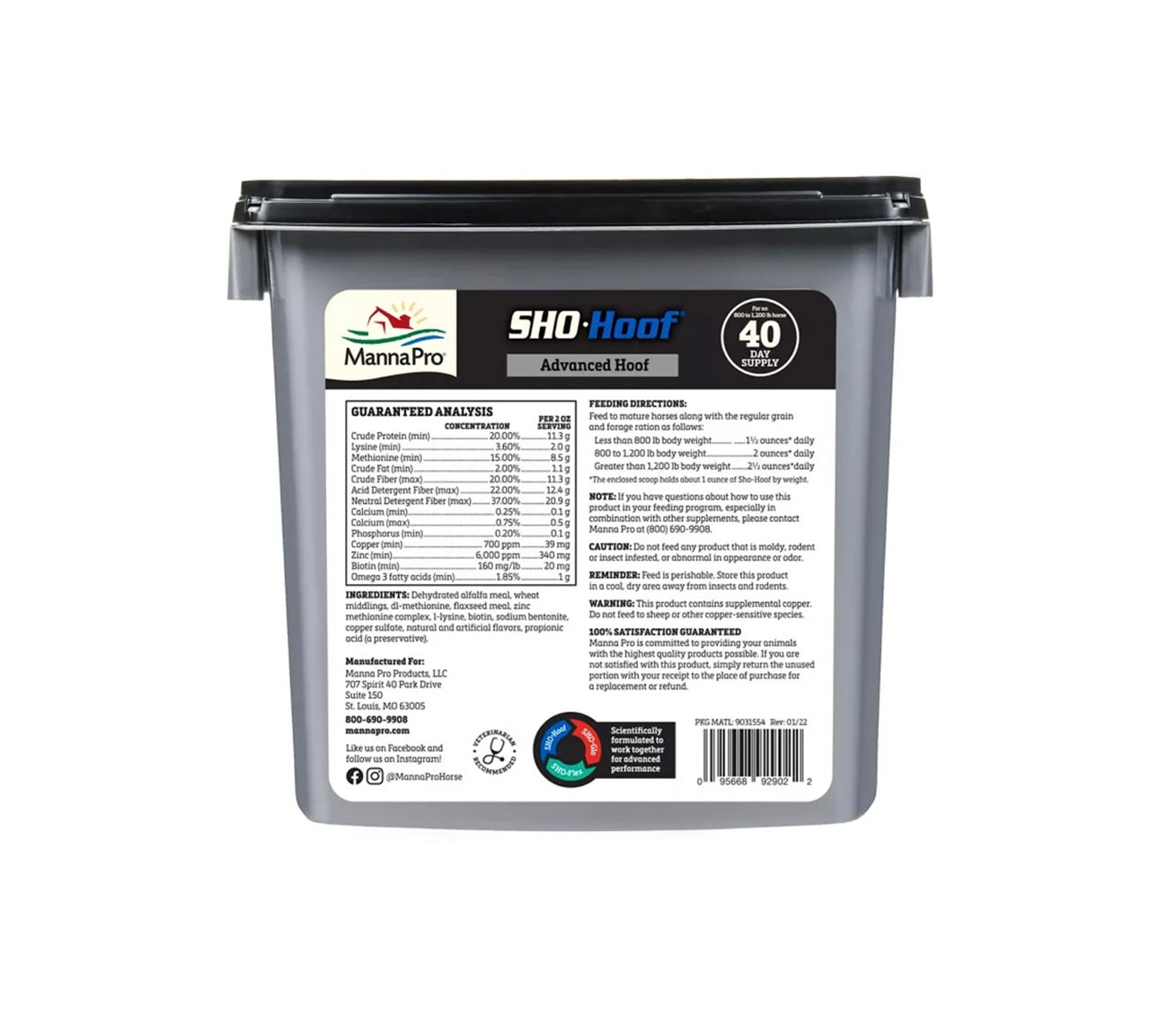 Invest in your horse's hoof health with Manna Pro Sho-Hoof Advanced Hoof Supplement. Order your 5 lb. bag today and give your horse the foundation for strong, healthy hooves!