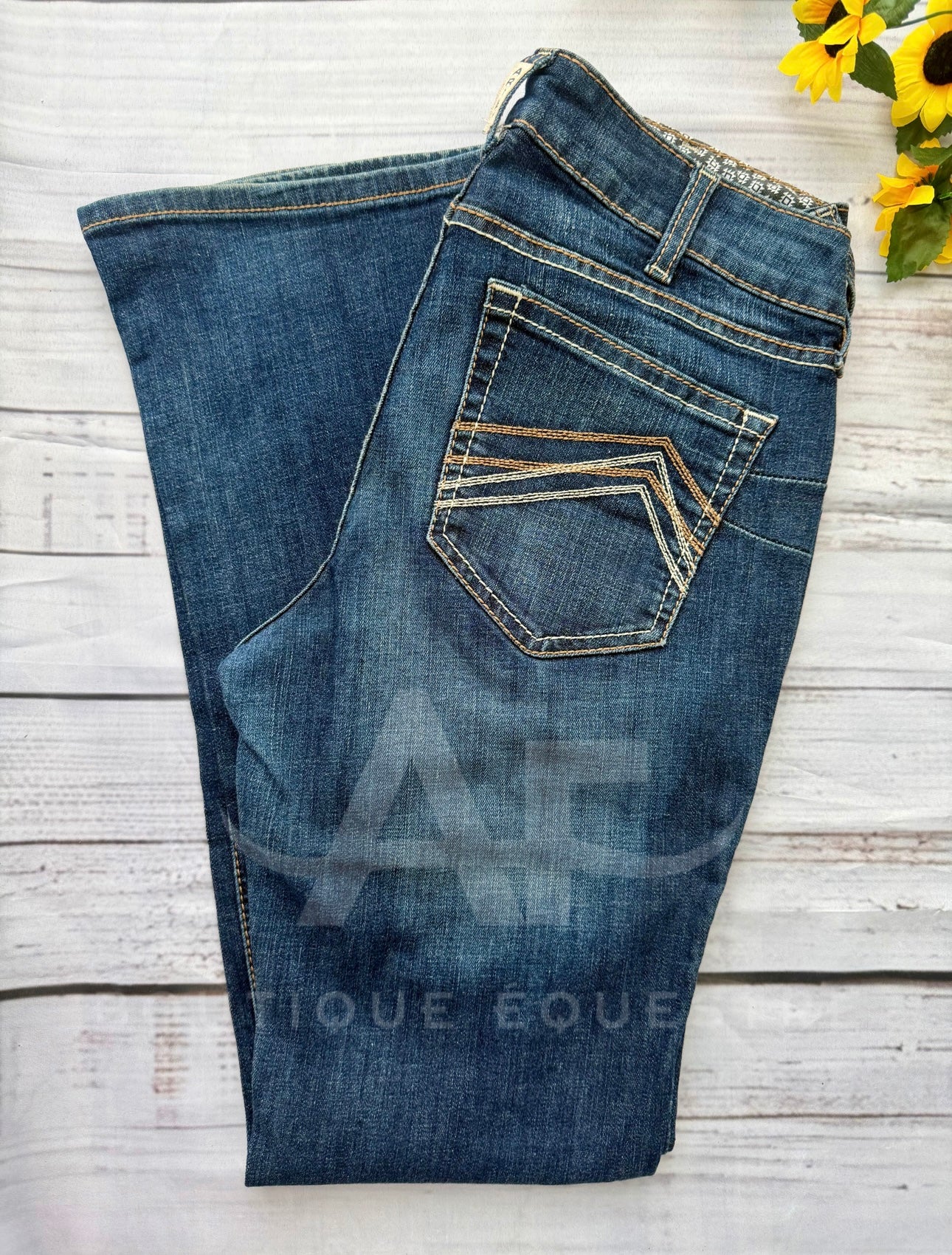 Durable enough for riding or work, comfortable enough for everything else. With an eye-catching back-pocket detail, this boot-cut style stretches in all the right places without stretching out. Eco-friendly bonus: This pair was made with 50% less water.