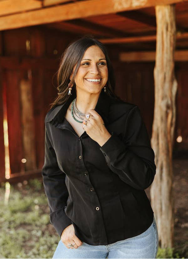 Cette solide chemise à manches longues boutonnée par est un essentiel de western intemporel. Conçu avec une coupe ajustée flatteuse et un col classique, il est parfait pour les rodéos, les événements western ou tous les jours. Associez le avec votre ceinture préférée et un jean pour un look de cowgirl soigné. Fabriqué à partir de tissu respirant et durable, cette chemise allie élégance et confort.