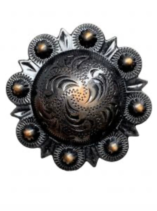 Copper engraved concho with screw. This copper engraved replacement concho measures 1-3/4" x 1-3/4".