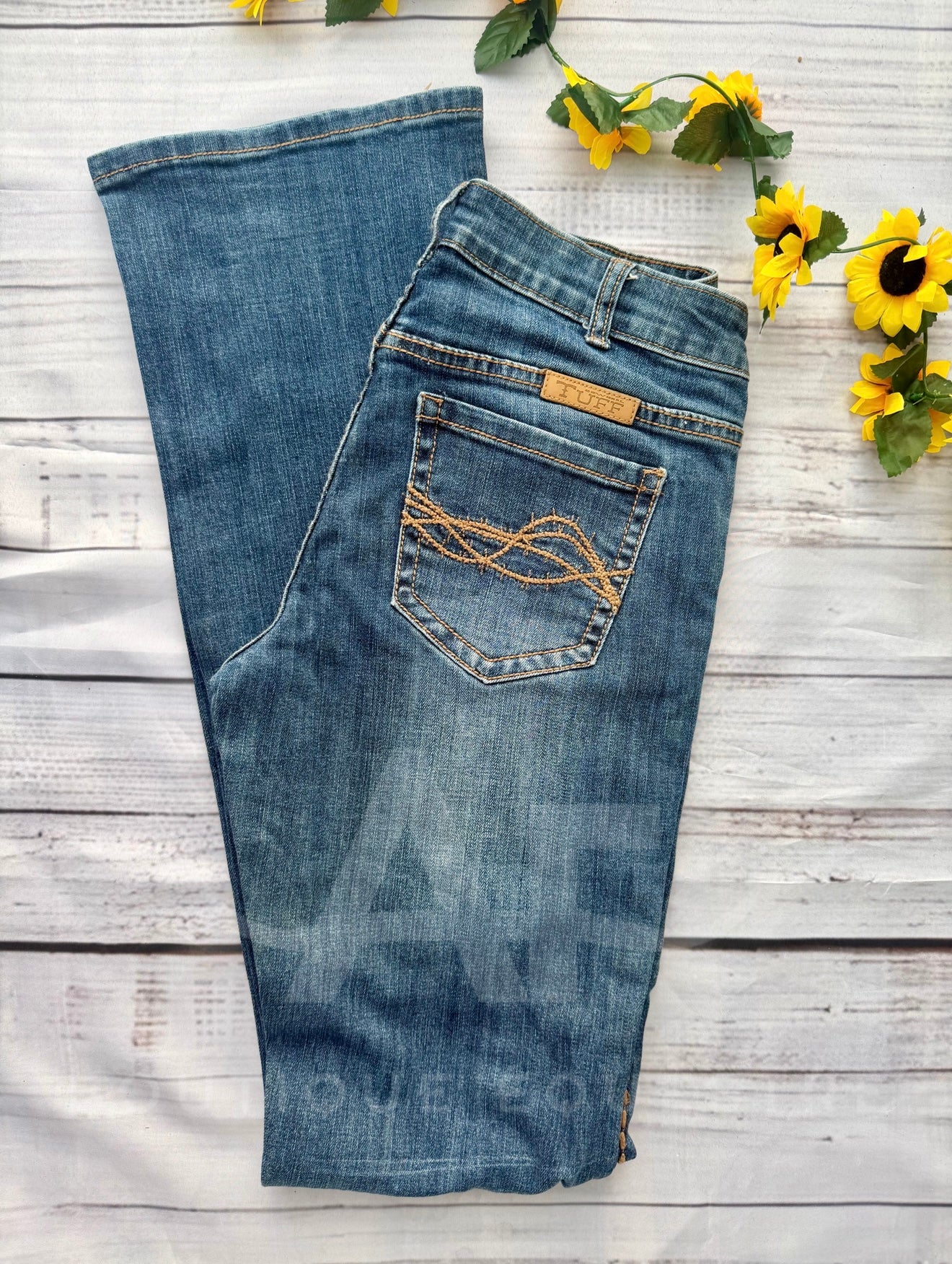 Never give up with Cowgirl Tuff, inspired by the rough n tough lifestyle of a true cowgirl, designed by a true cowgirl! With their high quality craftsmanship, unbelievable fit and unique designs, Cowgirl Tuff empowers everyone to be confident. This women's 98% cotton/2% spandex garment features a thick seam embroidery, light whiskering and 7 belt loop design. These stylish jeans are sure to become one of your new, everyday favorites!