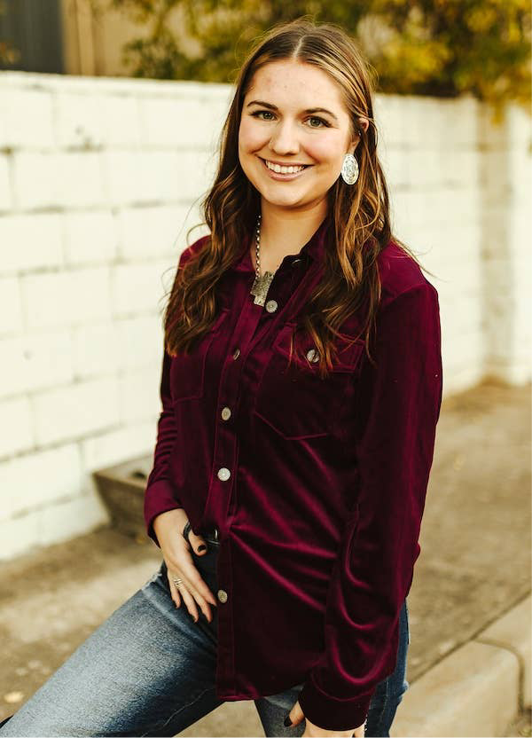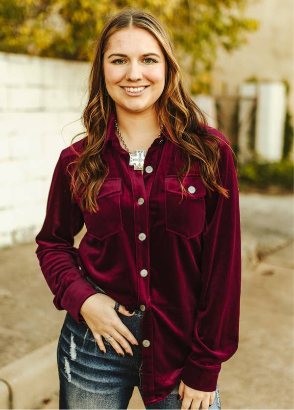 Ajoutez une touche occidentale à votre collection avec cette luxueuse chemise en velours. Confectionnée avec une texture douce et riche et un éclat subtil, cette pièce allie l’héritage robuste de la cowgirl à une sophistication chic. Doté de boutons nacrés, de coutures occidentales classiques et de deux poches avant, ce haut est parfait pour habiller un jean ou superposer sous un gilet en daim. La teinte audacieuse de ton bijou améliore les garde-robes saisonnières, ce qui la rend idéale pour les rodéos de vacances, les soirées entre filles ou les événements occidentaux haut de gamme. Conçu pour la femme occidentale moderne qui a soif de confort et de glam.