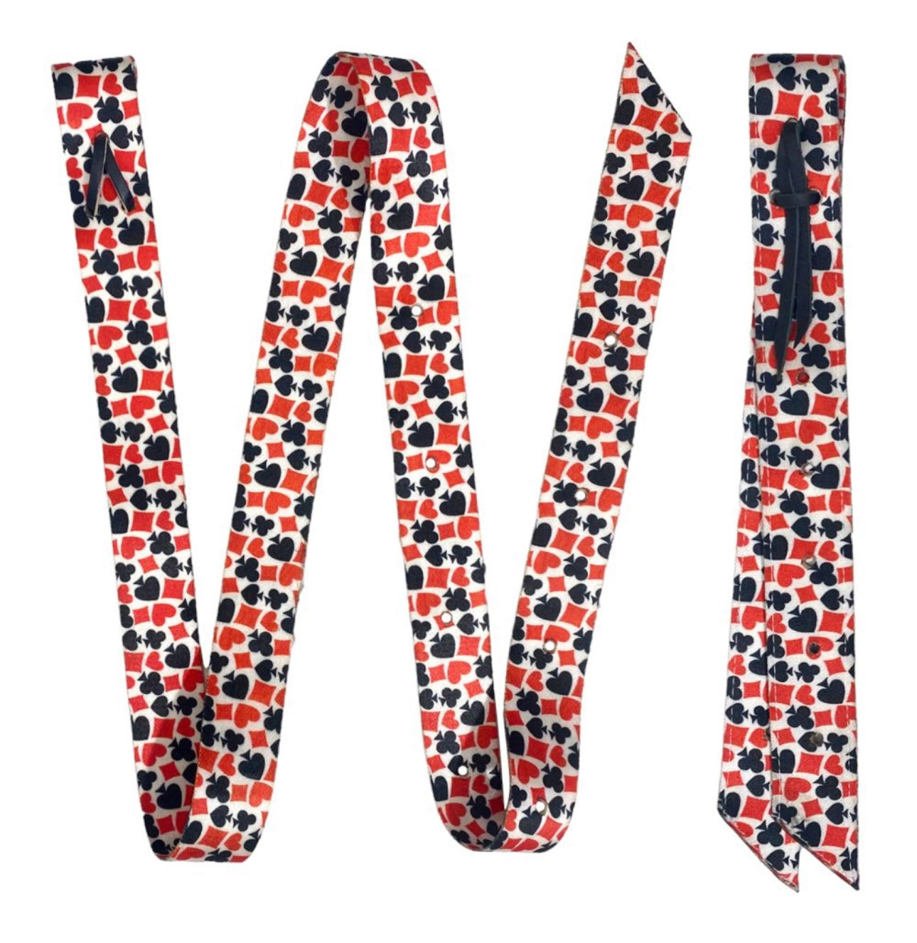 The vibrant gambler print adds a touch of personality to your riding gear, making it stand out in the arena or on the trails. Whether you're a seasoned rider or just starting out, this set is perfect for adding a pop of style to your tack collection. Trust in the reliability and eye-catching appeal of our nylon tie strap and off billet set with a gambler print design for your next ride!
