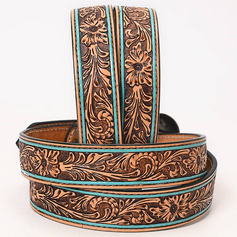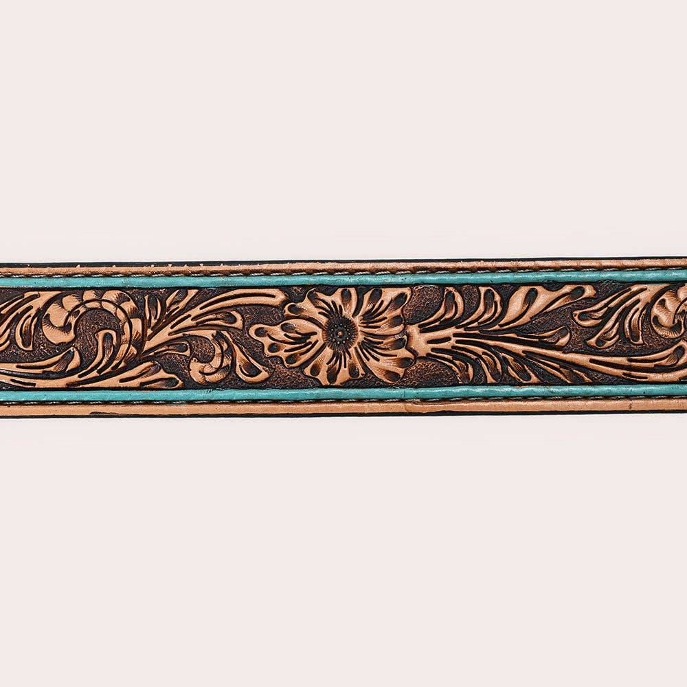 * TOOLING: The belts for men and women feature a detailed hand-tooled design and intricate floral pattern done by experienced craftsmen in the country. METAL BUCKLE: This unisex leather belt comes with a Heavy Duty removable buckle with screw fasteners. STITCH: Beautiful fancy stitch to add to the appeal.