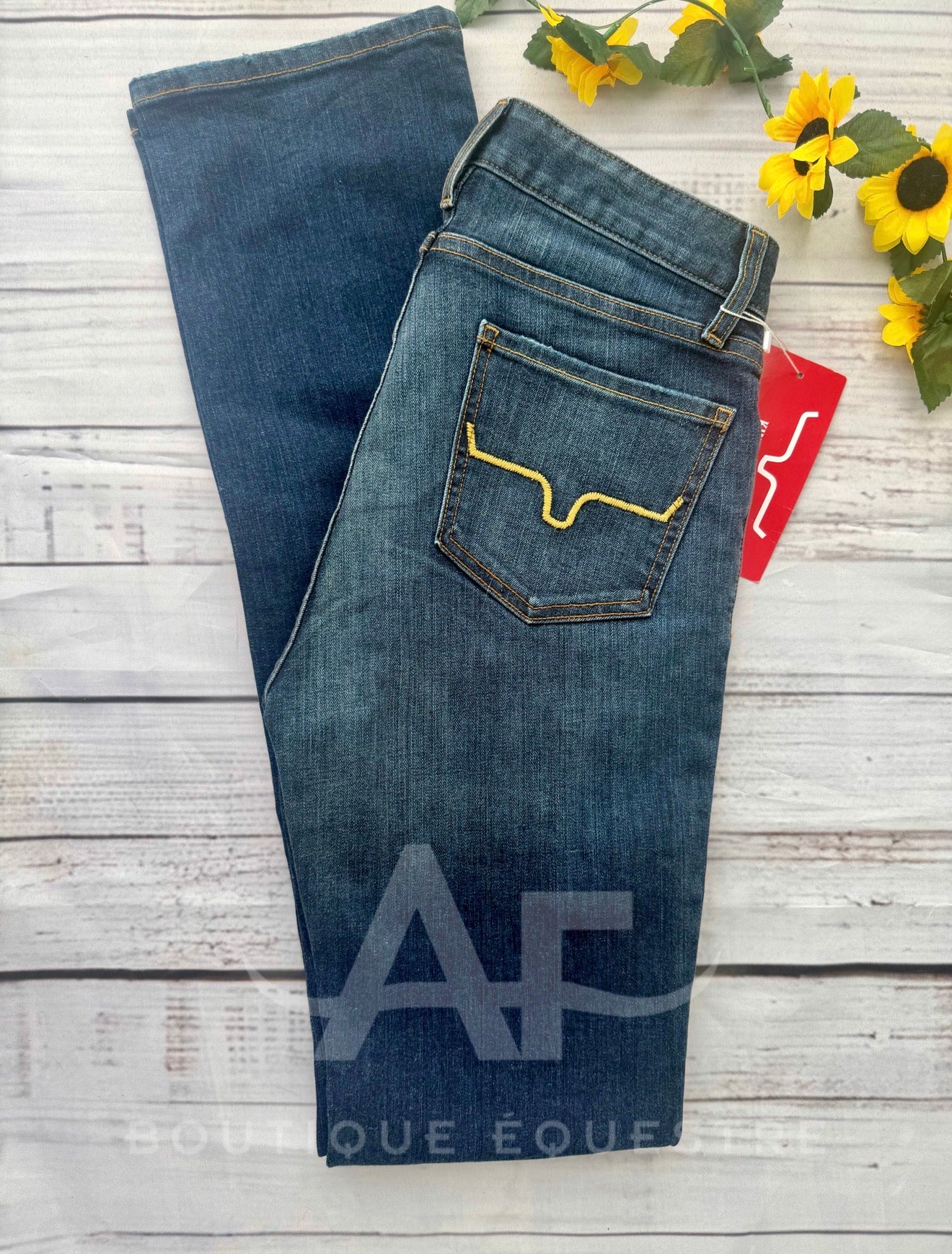 A high-rise waist with a slim bootcut, the Sarah is made out of our innovative tri-blend denim for maximum wearability and rebound. The Sarah features slimming dark wash denim with hand-sanded accents with our iconic Longhorn logo in sunny yellow on the back pockets and above the front right pocket.