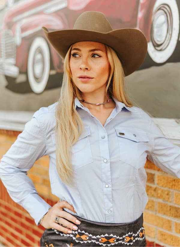 Avec des manches longues et des poches à rabat sur le devant, cette chemise dégage un charme de cowgirl moderne avec un clin d’œil à l’héritage occidental traditionnel. La coupe ajustée améliore les courbes féminines tout en permettant une facilité de mouvement, ce qui la rend idéale pour la vie de ranch, les soirées de rodéo ou le streetwear stylé. Fini avec des boutons-pression en perle brillante et des coutures robustes, cette pièce entièrement noire offre des options de superposition polyvalentes - glissées dans un denim ou portées ouvertes sur des débardeurs - pour un style toute l’année dans votre gamme de vêtements.