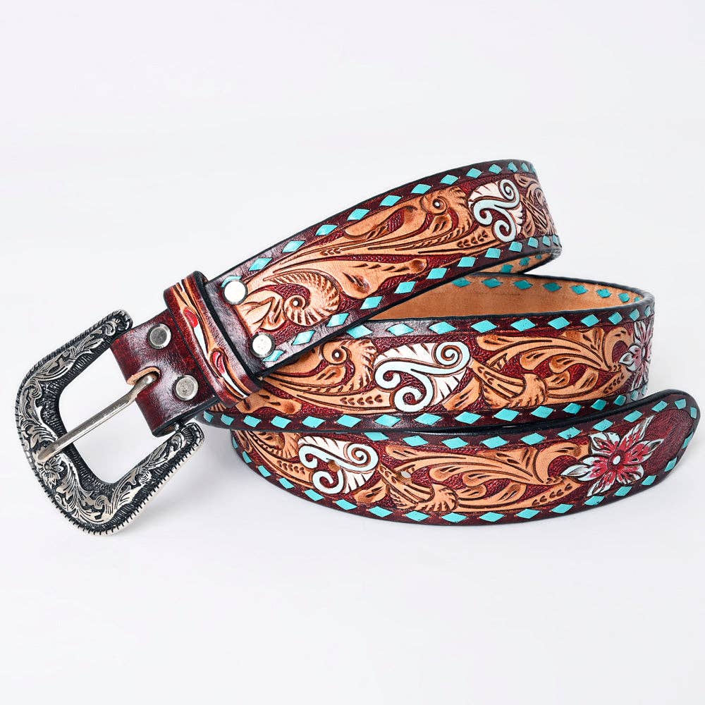 Meticulously hand-tooled, carved, and meticulously antiqued by skilled artisans, this belt showcases exceptional craftsmanship. Crafted from the finest Vegetable Tanned American Genuine Cowhide Leather, it embodies quality, style, and heritage.