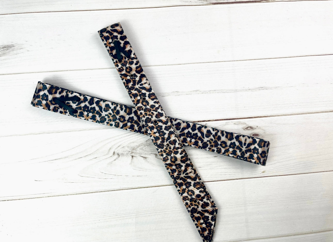 Premium Quality Cheetah Print Nylon tie strap and Off Billet set. 2ply webbed nylon. Off billet has 6 pre-punched holes and measures 18" x 1.75". Tie strap measures 6' x 1.75".