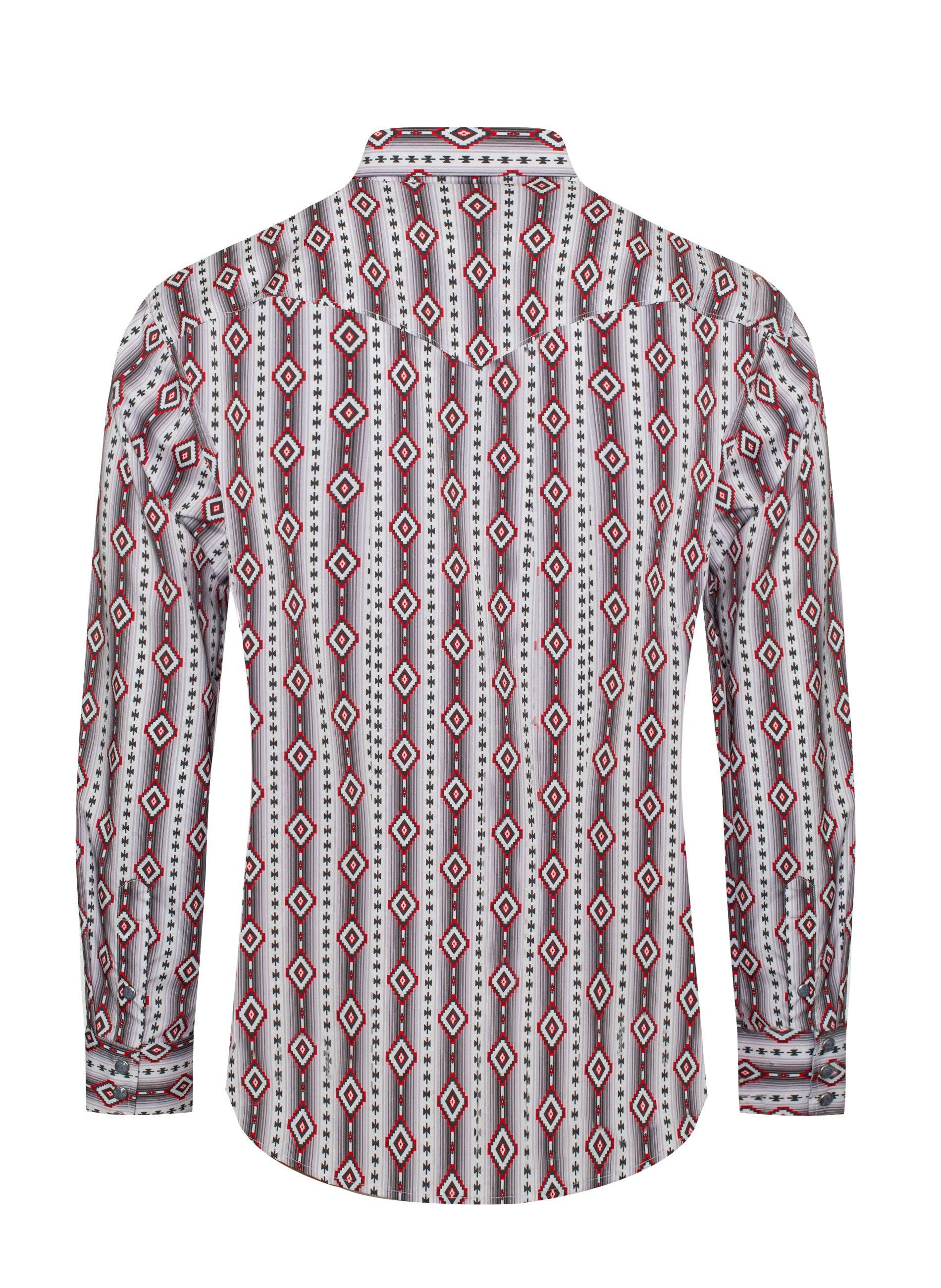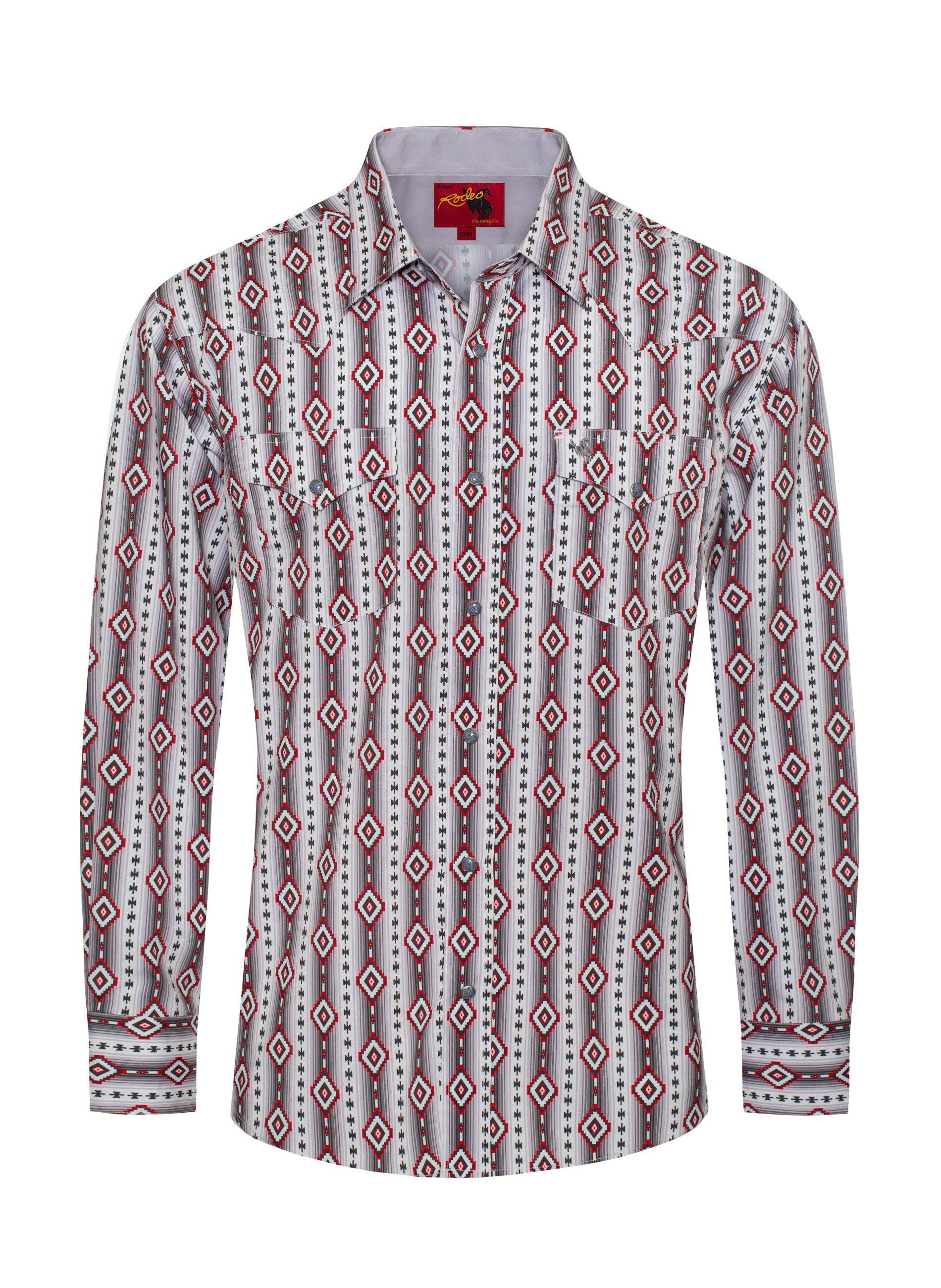 Rodeo Clothing | Chemise | Pearl Snap Aztec Red Print Shirt