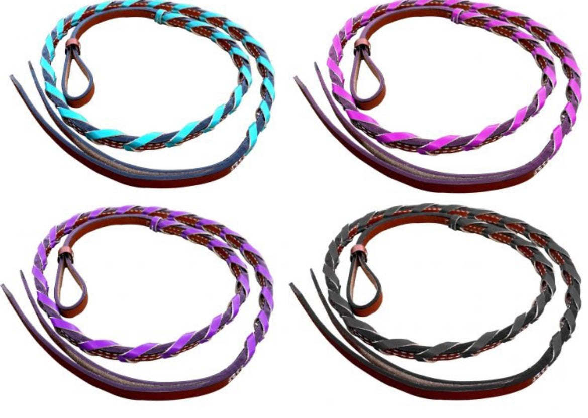 Medium Leather Over & Under With Colored Braided Accents. Measures approx. 4' long x 1/2" wide.